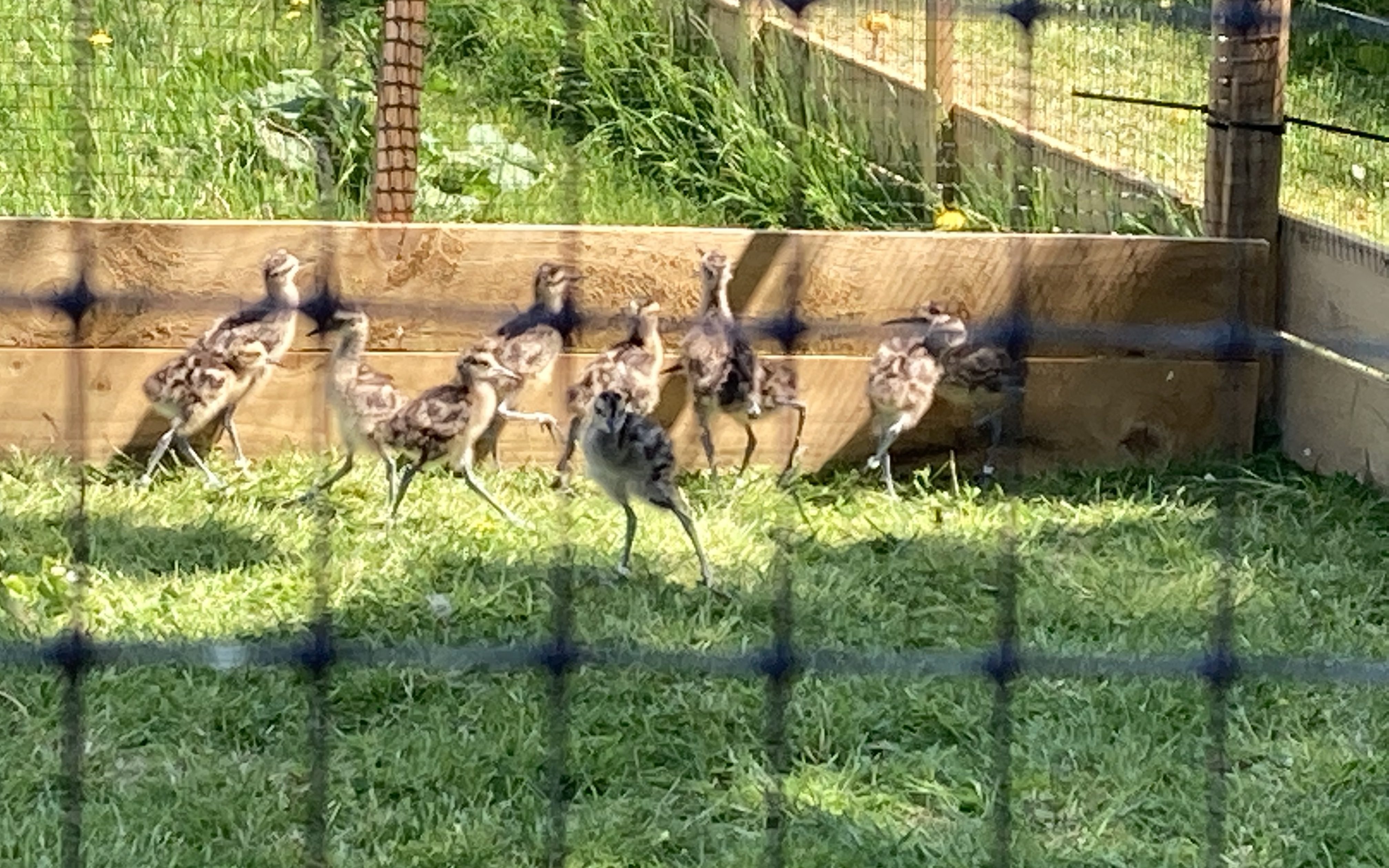 I took photographs of curlew chicks through the mesh of a pen wall. They were curious and loud in the sunshine, but they preferred to stay back from us and maintained a wary distance. Sometimes one would dash forward to grab an insect which had risen from the grass, and there would be an audible click of its beak closing upon it. They only had short beaks, and nothing which had begun to bend downwards like an adult bird. These are simply chopsticks, but in time they’ll grow long and supple and the birds will probe at depth in the foreshore mud for ragworms and luggers. But for now, most of their nourishment is obtained from trays of crumb and pellet, and the percentage intake of protein is carefully monitored by professionals. The birds have access to the correct ration, but quirks of purity and protein in processed meal mean that some of the youngsters develop a condition called “angel wing”; their primary feathers develop too quickly and the careful “zed” of the folded limb is unbalanced. The joint spills outwards, so instead of folding neatly across the back at rest, the “wrist” sticks out at right angles from the body. If it’s not corrected, this will become a permanent problem; the joints will become malformed, and while that’s no problem in terms of being able to fly, it rings up a range of potential issues down the line.